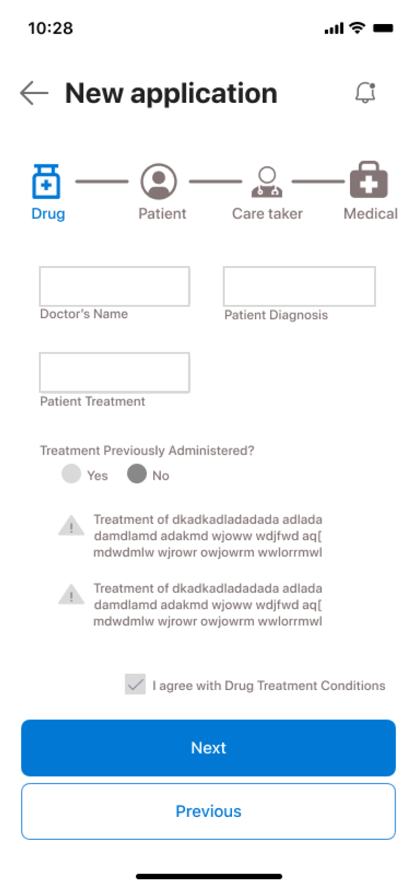Our team examined the existing flow and created an enhanced patient application in a variety of ways —